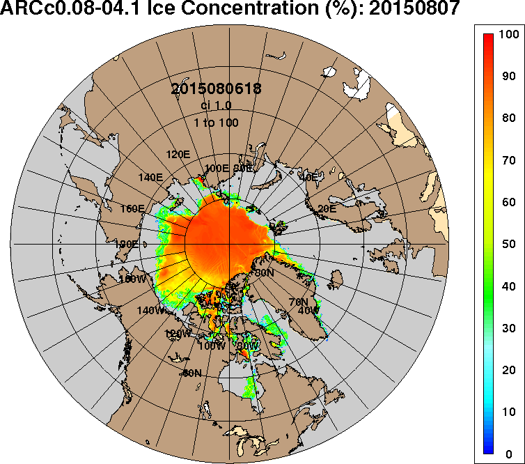 The actual Arctic ice amount is below. It shows double the amount of ice as National Geographic‘s map.