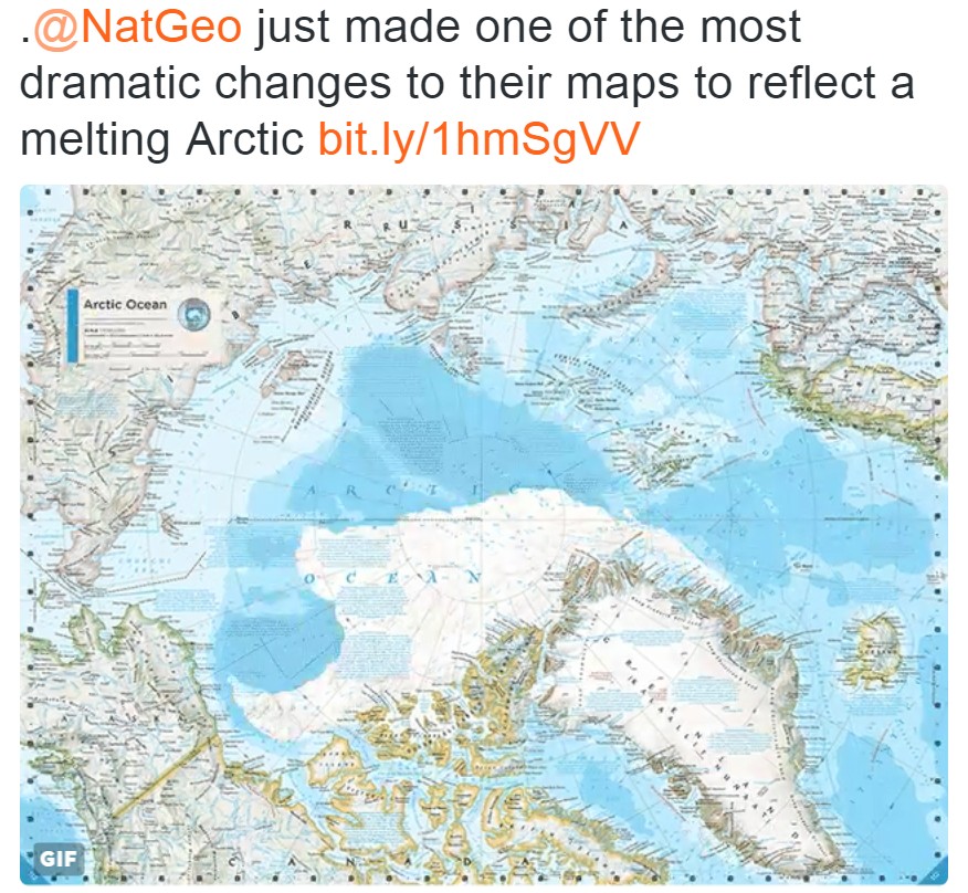 I was going to re-post this information from Tony Heller’s blog Real Science but somehow it does not have the option. I will post it here. Tony Heller points out that National Geographic (NatGeo) tweeted an Arctic map last week that shows half as much ice as there actually is.