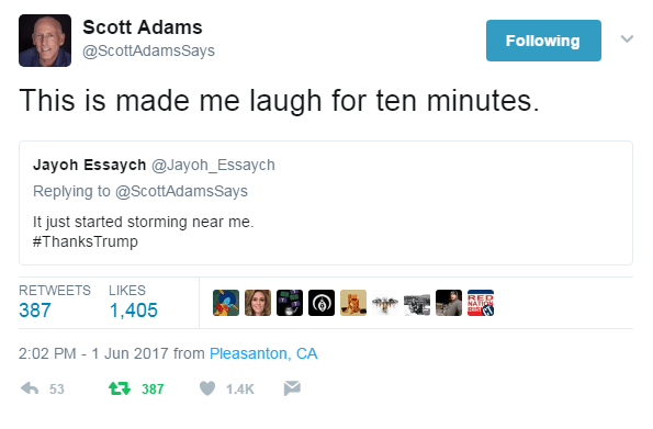 humor Friday Funny – the first consequence of exiting the #ParisAgreement Date: June 3, 2017Author: gjihad Share this: Click to share on X (Opens in new window) X Click to share on Facebook (Opens in new window) Facebook Like Loading...