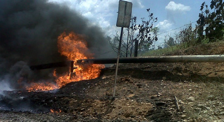 Photo Credit:: A Colombian pipeline set on fire allegedly by a communist group.