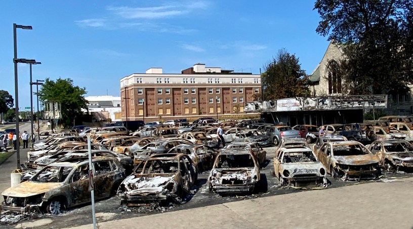 PHOTO SOURCE: Completely burned out car dealership Car Source Kenosha Burned out car lot 5821 Sheridan Rd, Kenosha, WI – By Lightburst – Own work, CC BY-SA 4.0, https://commons.wikimedia.org/w/index.php?curid=93638834