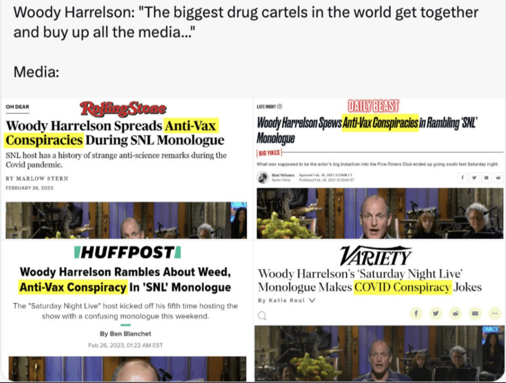 Considering the venue and audience, it is surprising that SNL’s producers allowed Harrelson to spout off like this.
