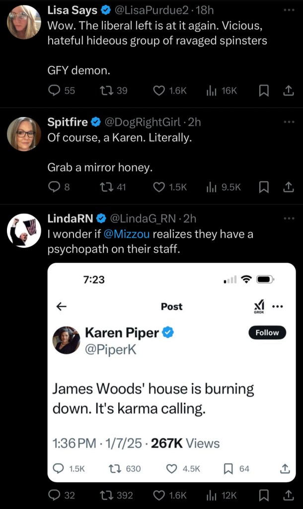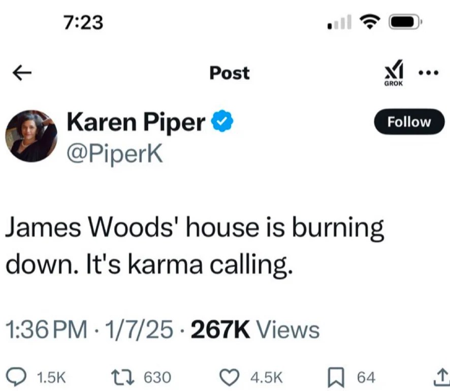 Southern California continues to be ravaged by wildfires and already Leftist termites are coming out of the woodwork or being exposed. A professor at Missouri State University (aka Mizzou) decided to tweet about the likelihood of actor James Woods losing his home.