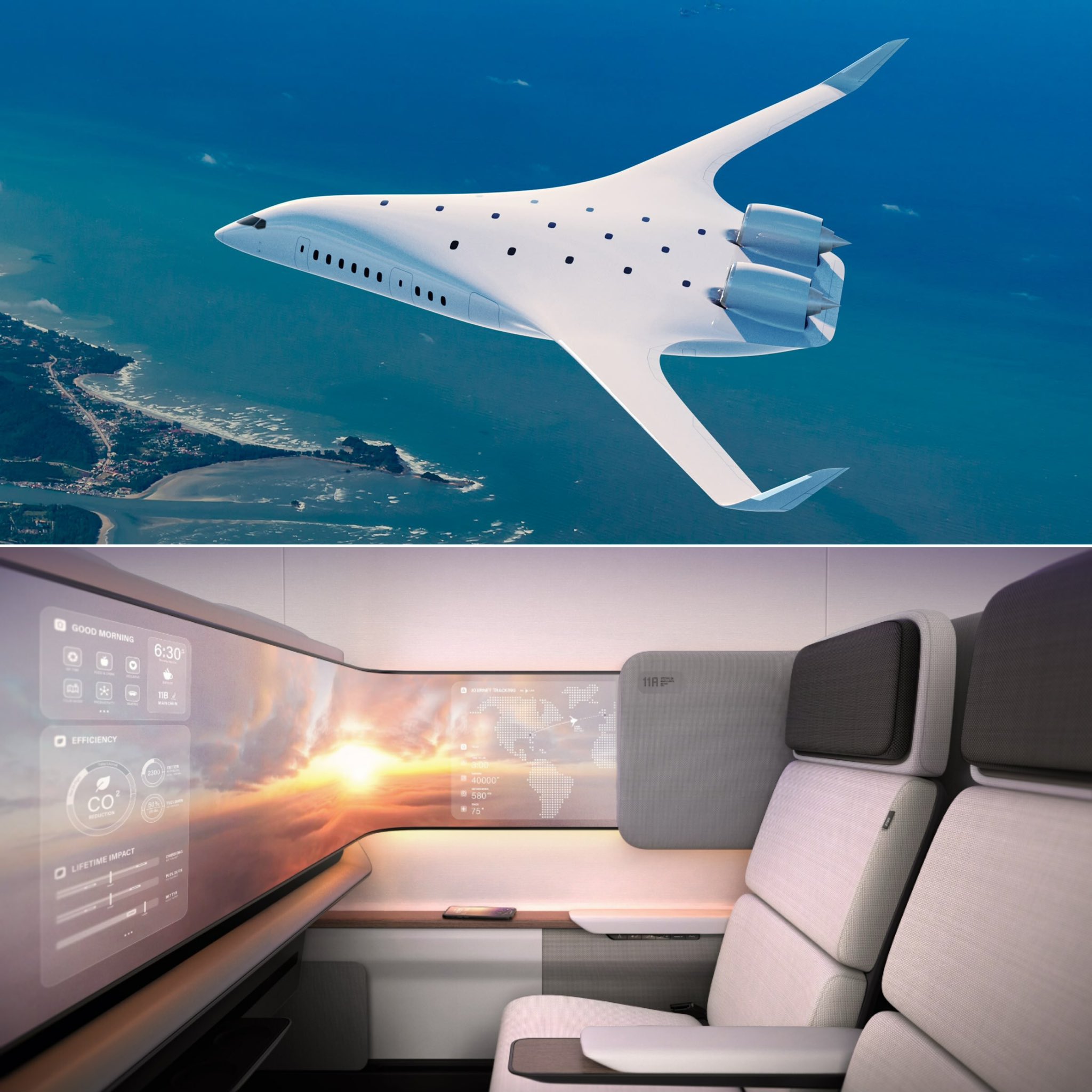 The lightweight airframe — which differs from the traditional tube-and-wing shape — is expected to carry more than 250 travelers and will provide a much quieter journey with the engines mounted on the roof of the plane.