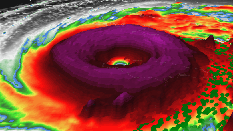 PHOTO CREDIT: A 3D satellite depiction of Hurricane Melissa as it crossed Jamaica.