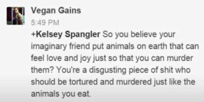 Update on vegan woman who wants meat eaters dead